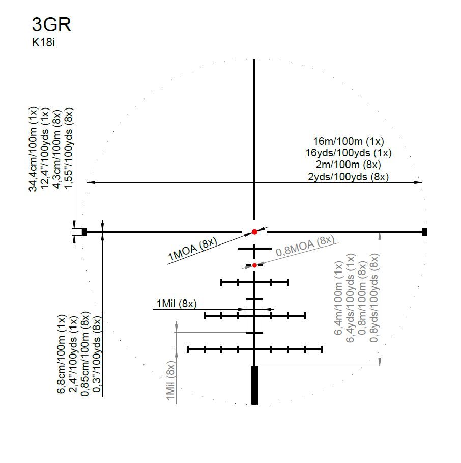 Puškohled Kahles K18i 1-8x24, CW, Right, IPSC